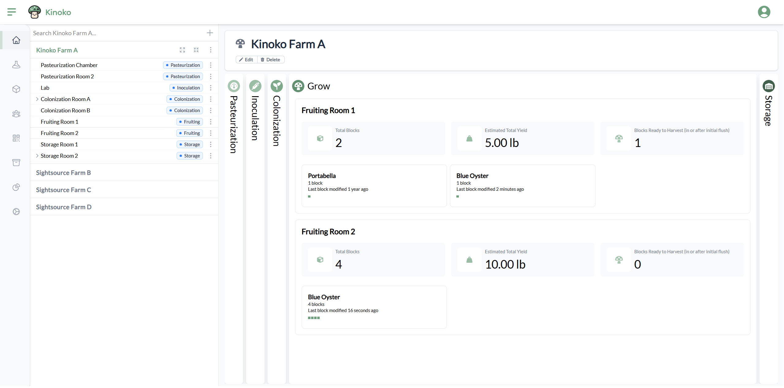 Kinoko offers plans that will meet the needs of individual, small, and large mushroom farms. Get started today on a free plan to see what Kinoko can do for you.