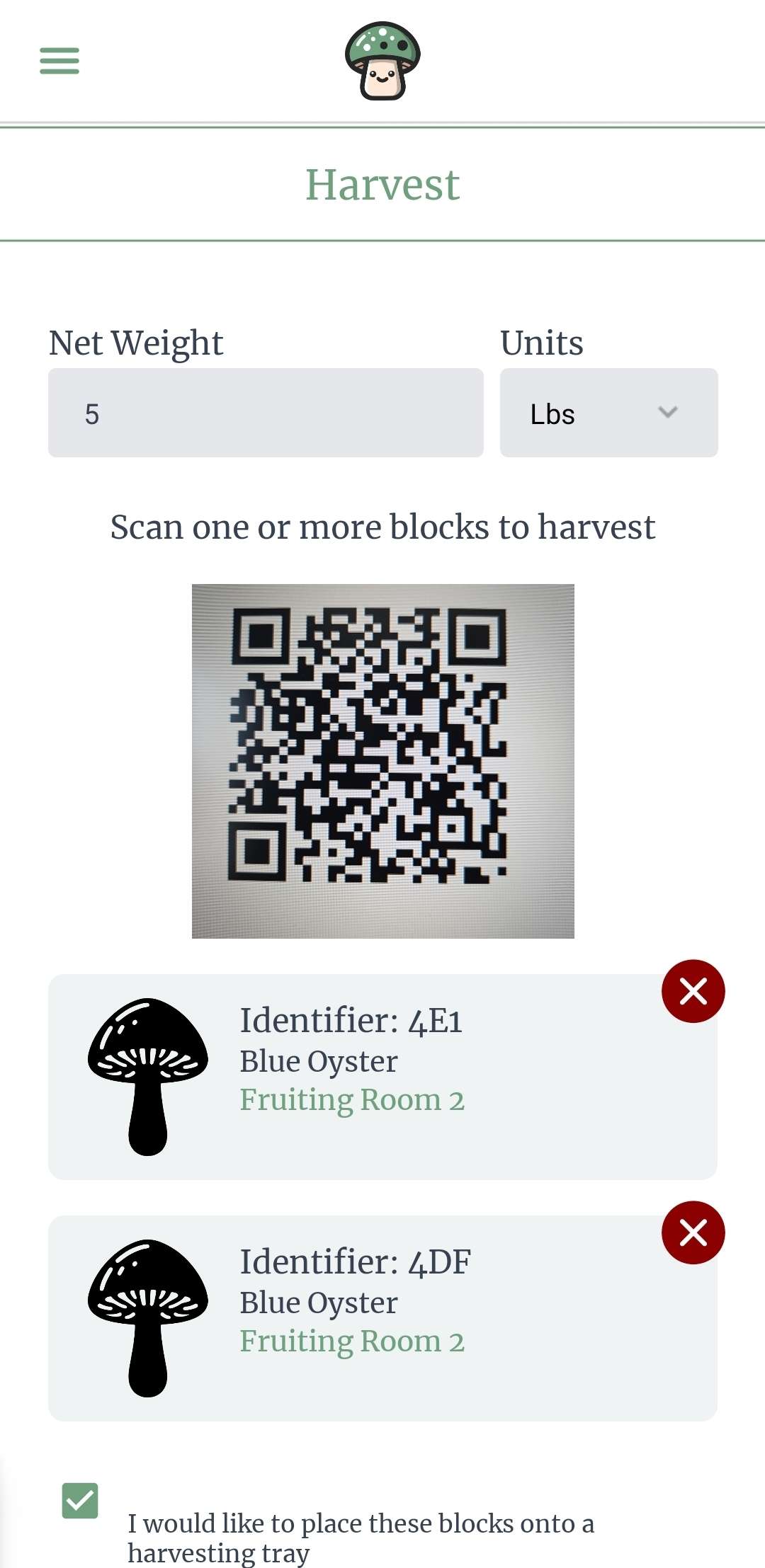 Scan a block, location, or tray QR code label to track the day-to-day activities happening on your farm