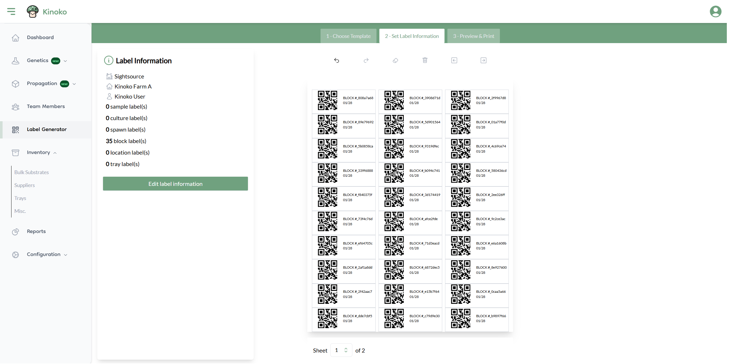 Print QR code labels for each block, location, and tray in your farm. The mobile app will use these labels to track blocks and manage your farm.