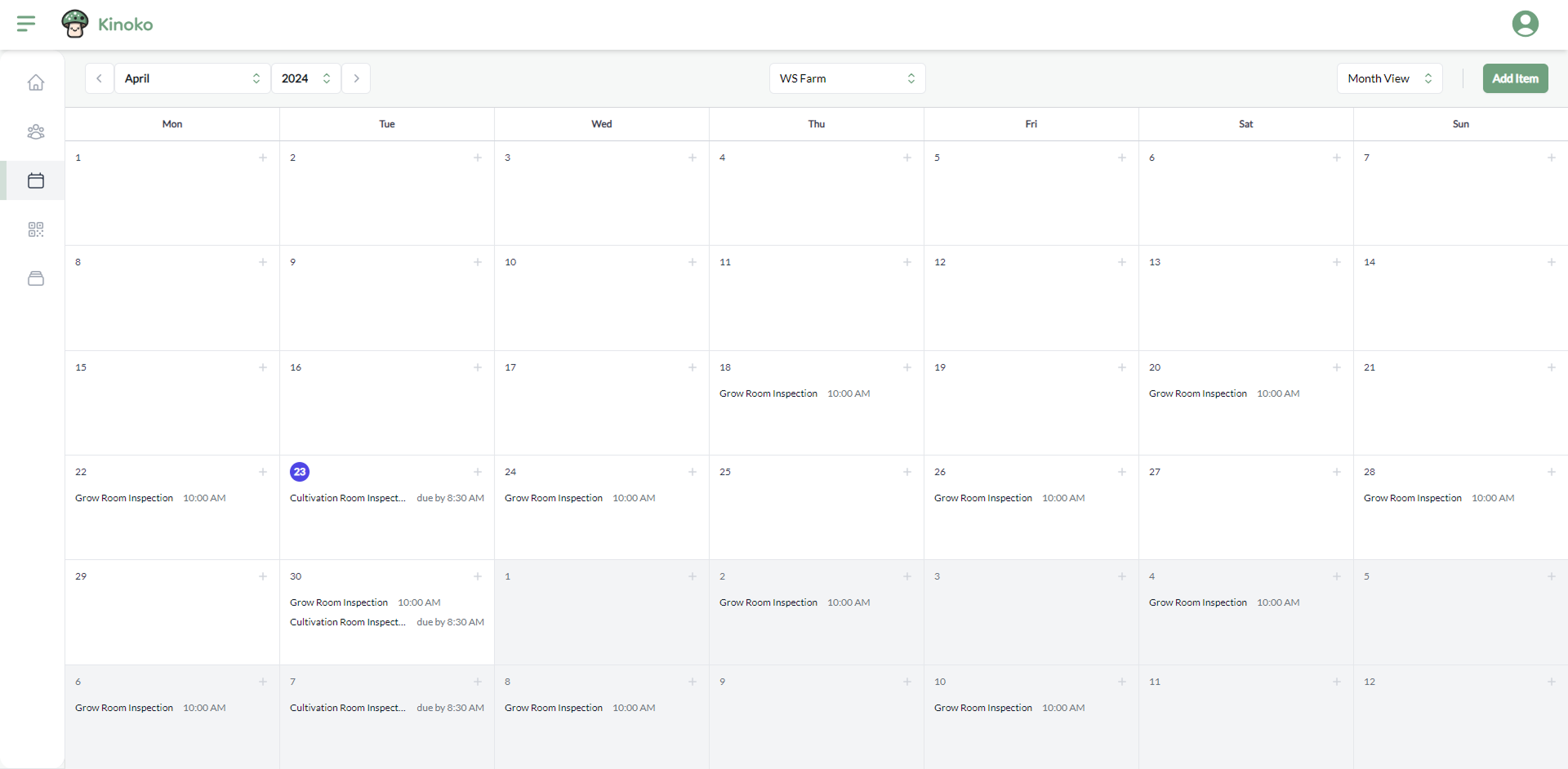 Schedule users to make room inspections, transfer blocks, harvest, and more.