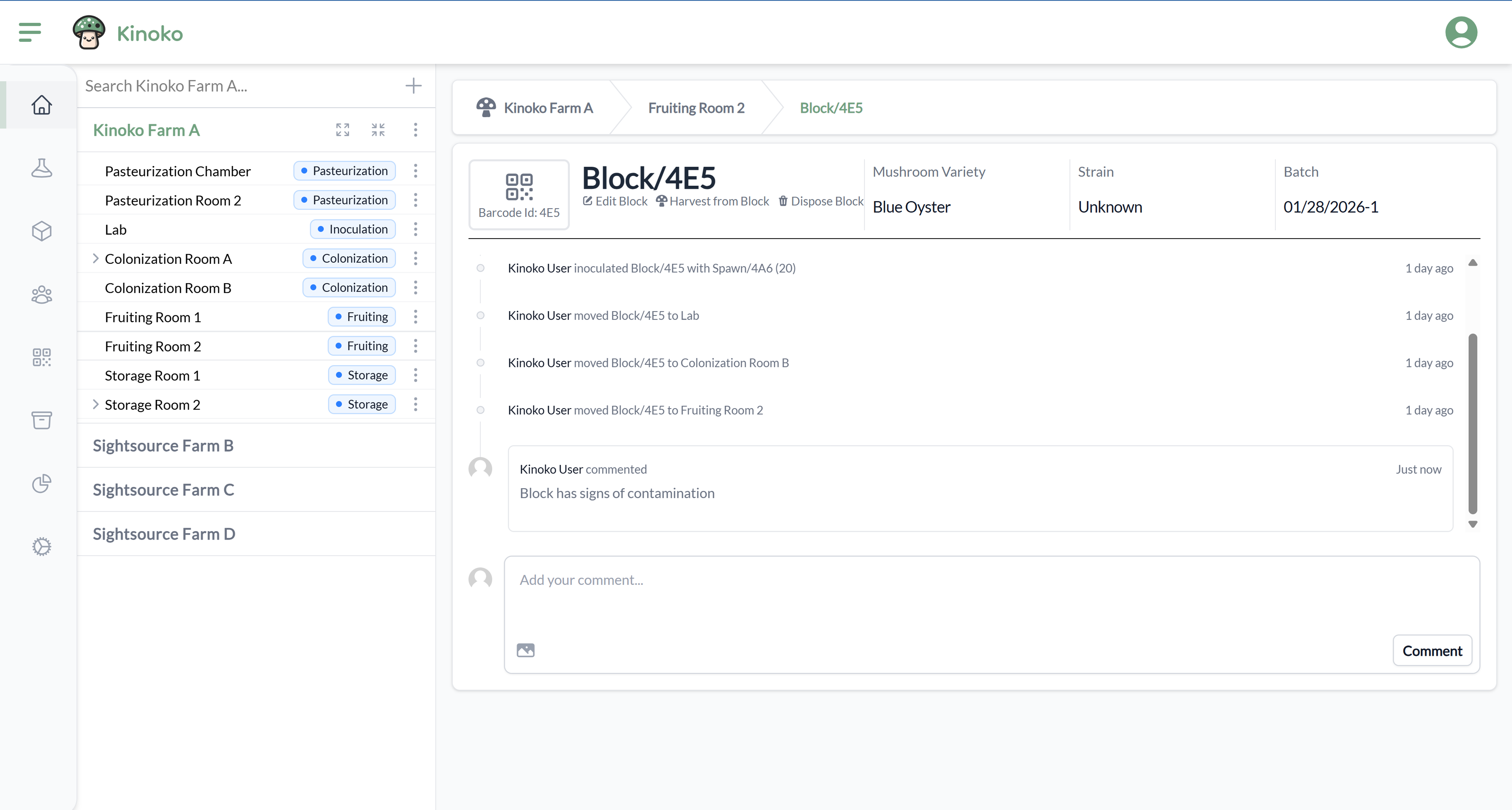Kinoko offers plans that will meet the needs of individual, small, and large mushroom farms. Get started today on a free plan to see what Kinoko can do for you.