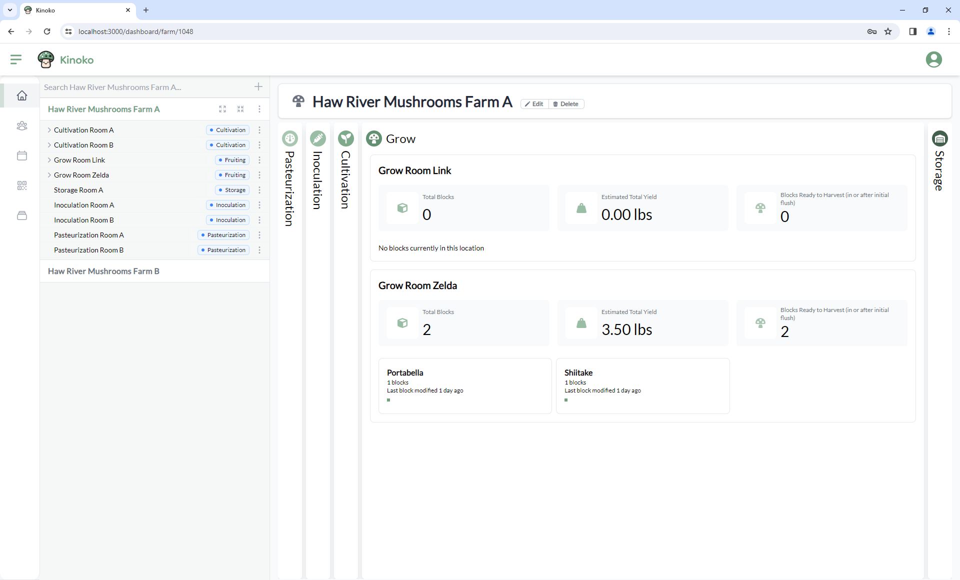 View batches within your pasteurization chambers, determine how many blocks are within each location, estimate total yield in each room, and predict when blocks need to be moved to the next stage of the process.