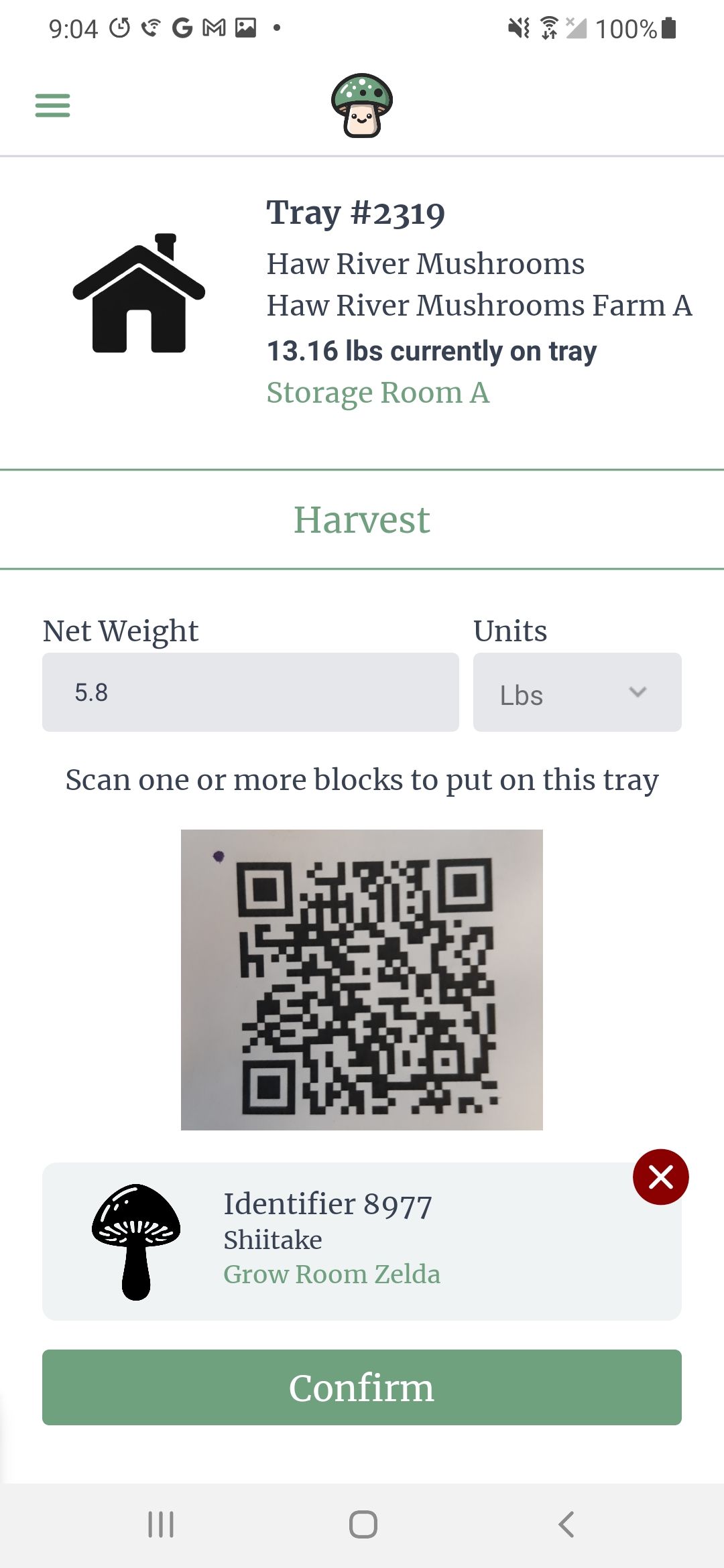 Scan a block, location, or tray QR code label to track the day-to-day activities happening on your farm