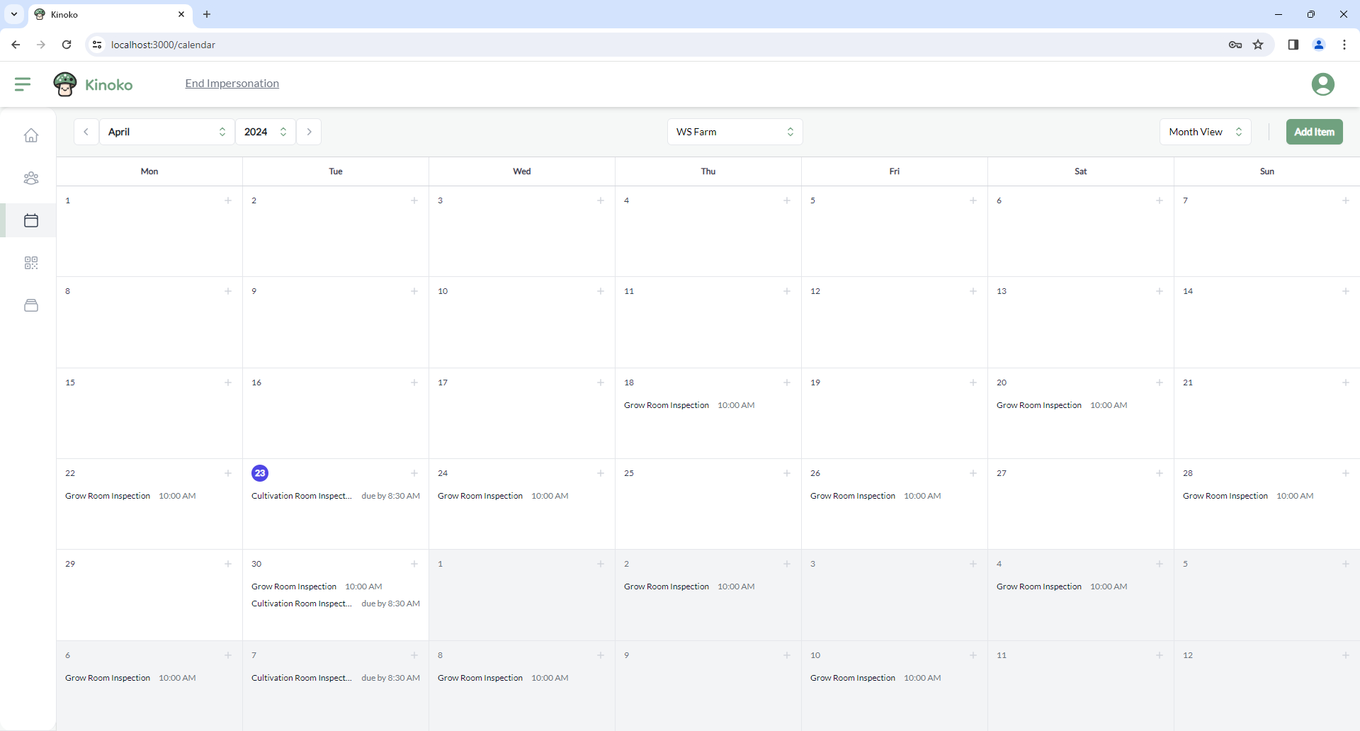 Schedule users to make room inspections, transfer blocks, harvest, and more.